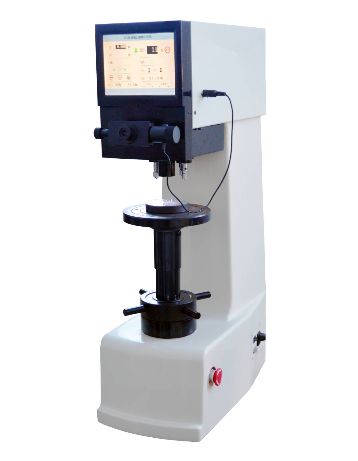 XHB-3000Z II三壓頭自動轉塔數顯布氏硬度計采用精密的結構設計,試驗力施加由力傳感器直接控制,使整機結構緊湊,加卸試驗力平穩、準確。所有參數由觸摸屏控制及顯示,操作方便。在電氣上由CPU控制試驗過程,物鏡和壓頭間采用自動切換,切換定位采用機械與電子雙重配合,使定位精度更高。本儀器具備10級試驗力,13種布氏硬度的測試標尺,可任意選擇;具備了三組球壓頭和兩組物鏡,都能自動參與測試,物鏡和壓頭間自動識別、自動切換;可預置試驗力保持時間、調節測量壓痕光源的強弱;顯示測量壓痕長度、硬度值、測量次數等;可選擇各硬度標尺之間的換算值;硬度測試結果可打印輸出;硬度計還可根據用戶特殊需求配置CCD裝置和視屏測量裝置。