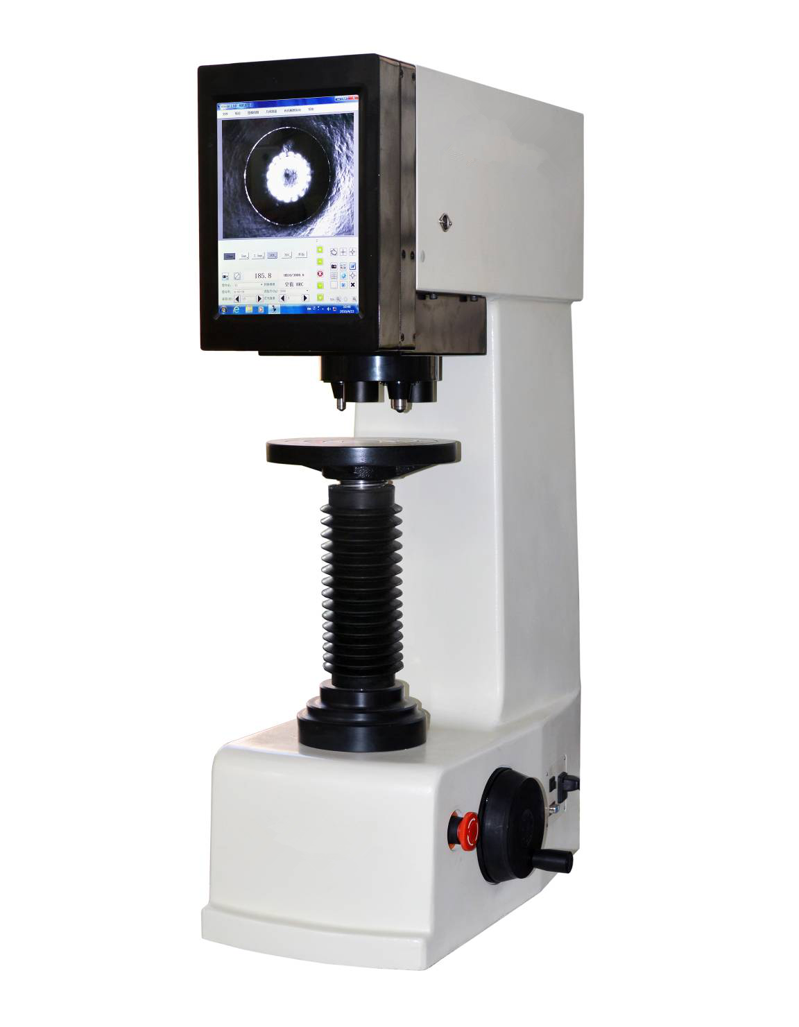 l 內置CCD圖像自動測量系統,觸摸屏操作顯示,可預置試驗力保持時間、調節測量壓痕光源的強弱功能,顯示測量壓痕長度、硬度值、硬度值的測量范圍、測量次數等等;
