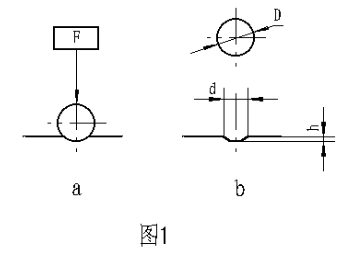 金屬布氏硬度試驗系采用一定直徑硬質合金球,以規定試驗力壓入被測材料表面(圖1a)按規定保持時間后,卸除試驗力,(圖1b)測量試樣表面的壓痕直徑,以計算出布氏硬度,并以下式計算之:
